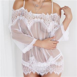 Sexy See-through White Lace Hollow Out Spaghetti Straps Bodysuit Teddies Lingerie N23099