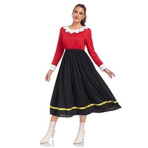 90s Retro Sailor Style Dress with Ruffle Collar - Red Black Flared Dress for Vintage Fashion N23802