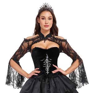 Gothic Detachable Black Lace Cape Shawl with Bell Sleeves for Costume Dress Up N23805