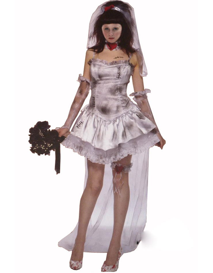 Ghost bride Costume W3194 includes Dress, Veil, Choker Neck Piece, Long Tulle Veil, Gloves and Leg Garter, that looks very hot and sexy. Im you're your and your customers will like very much.