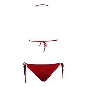 This sexy bikini features include: a red triangle bikini top with halter design, matching a lace-up bikini bottom. Perfect for beach, pool party and other occations.