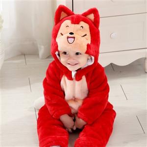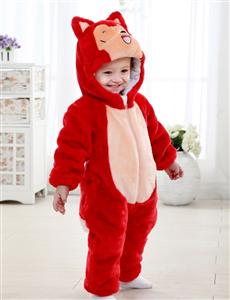 Red Raccoon Jumpsuit Climbing Clothes, hat and tail full 3D cartoon image,two-way zipper design,more convenient to change diapers or baby pee,Cuffs narrow design,Inside to keep warm.