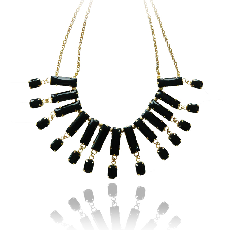 This Fashion Necklace features: fashion high quality double alloy chains, charming black artificial black gems ranged and connected as a sector and radiating, adjustable alloy buckle fit your size. Perfect for daily casual, party, ball, dating, chilling out and other occasions.