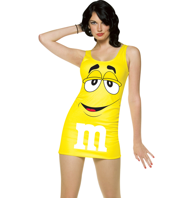 The Yellow M&M costume includes a Yellow tank-style mini dress with Yellow M&M face.