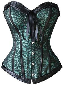 Strapless Green Burlesque Corset M6531 includes g-string, that looks very hot and sexy. Im you're your and your customers will like very much. fit for almost of women, if you Green Brocade Burlesque Corset with Ruffle Trim big or plus size please contact us by email or MSN.