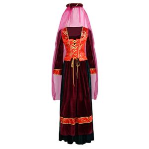 Whenever you need to be the best looking maiden inthe house, then put on our Medieval Maiden Costume. Ultra feminine & beautiful, the full-length crushed dress comes with a satin corset top, has long flared sleeves & headpiece with a long sheer veil. Perfect dress to complete any medieval or Renaissance look.