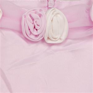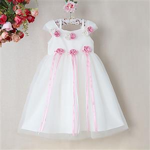 This beautiful girls dress features: off shoulder pink dress with cap sleeves and spaghetti straps, pink and white roses stitched on bust and waist, also decorated with long ribbon form waist to hem, lovely high waist muti layered organza skirt. Perfect for wedding party, banquet, daily casual and other occasions.