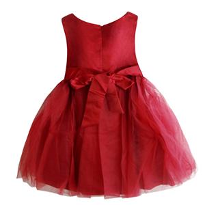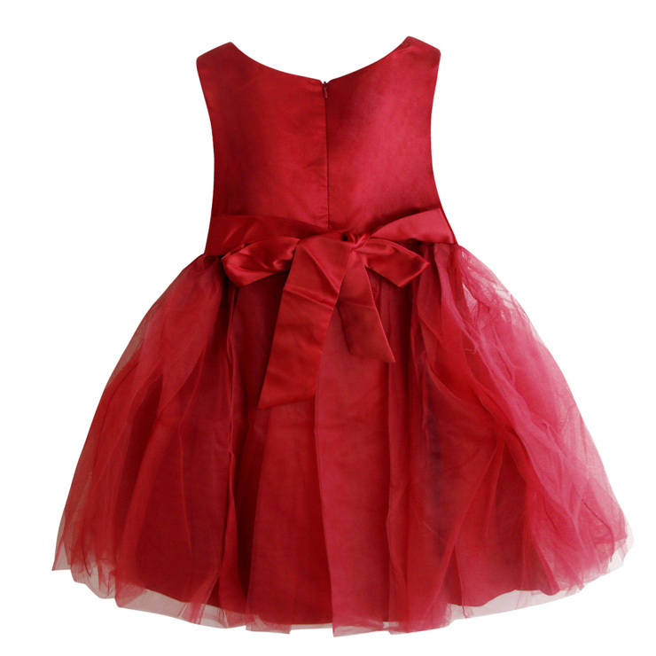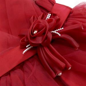 Elegant mesh satin flower pearl waist v-neck sleeveless wedding or performance show princess dress.