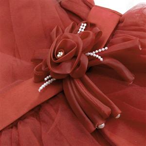Elegant mesh satin flower pearl waist v-neck sleeveless wedding or performance show princess dress.