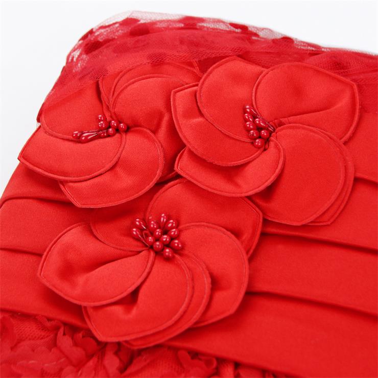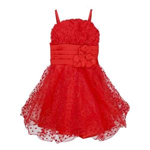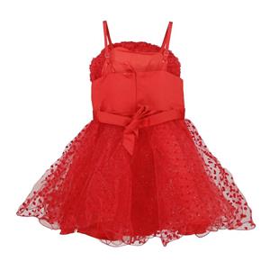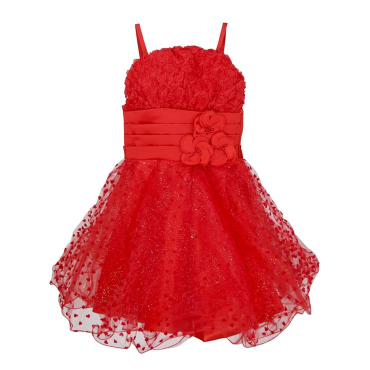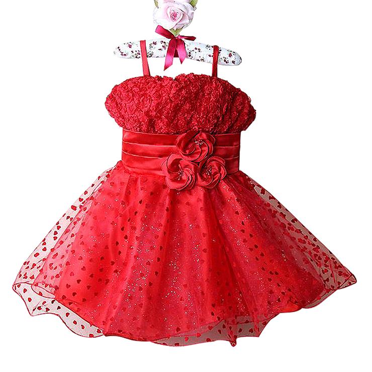 This cute red with flower high waist little love decorate princess dress, layers of lined tulle skirt, zipper closure back for perfect finish.