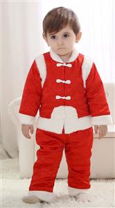 China-chinese style red baby suit costume, classical red and white brocade front 4 buttons design look more useful, special cuffs design not only keep warm but also protect baby skin, crotch more convenient to change diapers or baby pee.