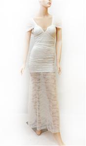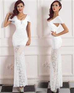 This is sexy charming white cotton low chest with padded bra portrait neckline lace side zipper-up long gown.