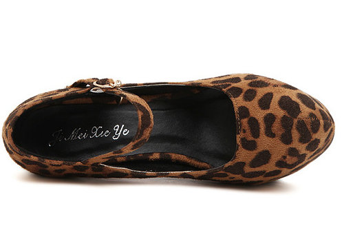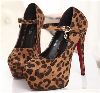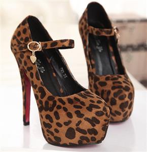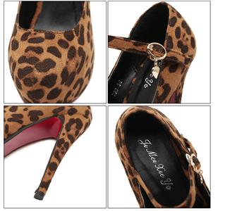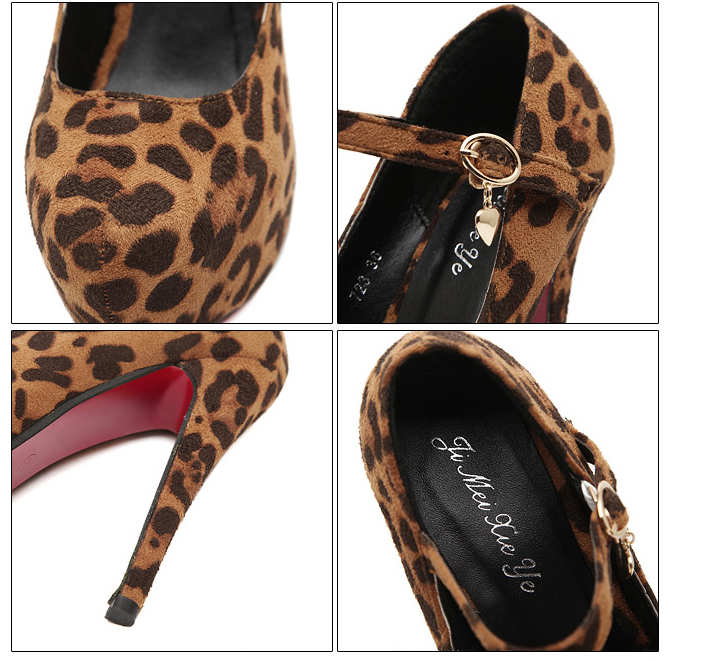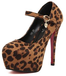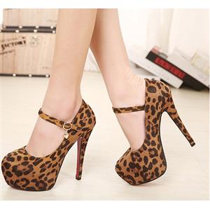 Brown Suede Leopard Print Buckle High Heels.