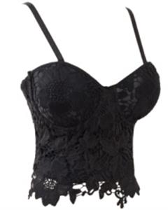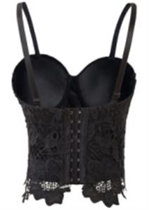 A strap lace bustier style bra with beautiful floar lace overlay, built in underwire, hook and eye closure back.