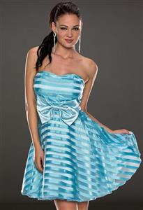 New Style stunning blue strapless middle big bow accent mini/short women's dress, party/wedding dress.