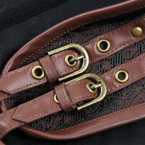 Steampunk sexy brown steel boned underbust corset vest, used unique jacquard fabric, with high neck design, two side with adjustable buckles trim, buck closure in front, lace-up in back for cinching, matching g-string.