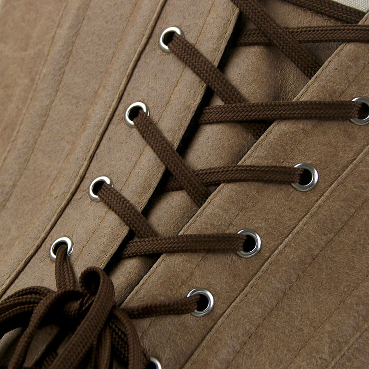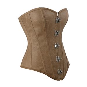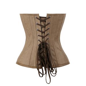 Women's fashion retro overbust corset, with metal busk closure in front, made of faux leather fabric, lace-up in back for cinching, matching g-string. Fit for halloween party.