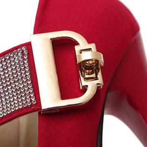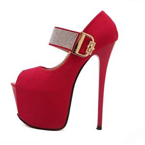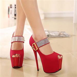 Shoes Style: Fashion Red Platform Stiletto Heels, Ankle Wrap High Heels, Sexy Rhinestone Embellish Ankle Wrap Shoes, Office Shoes, Spring High Heels