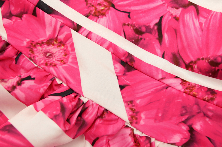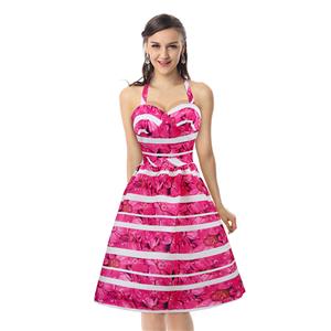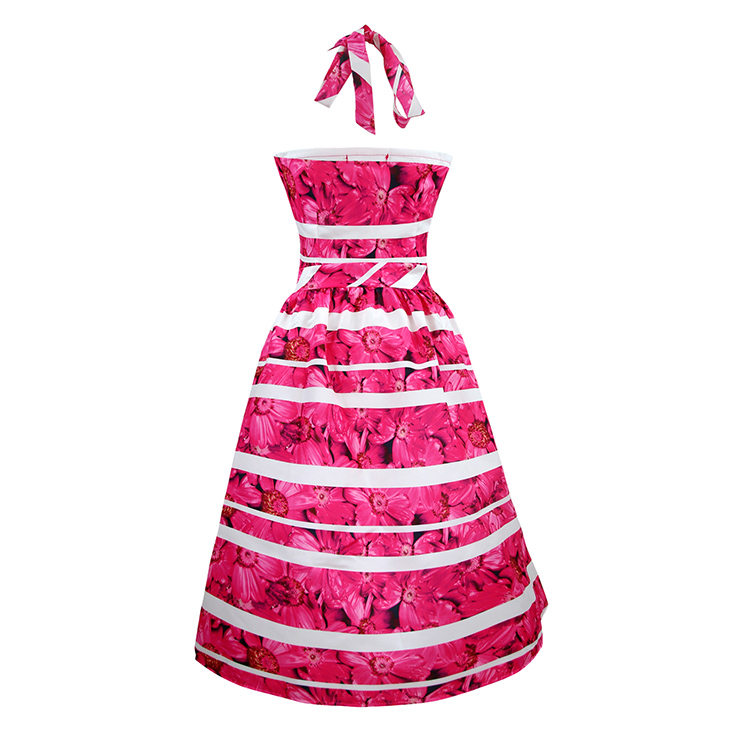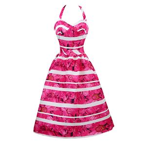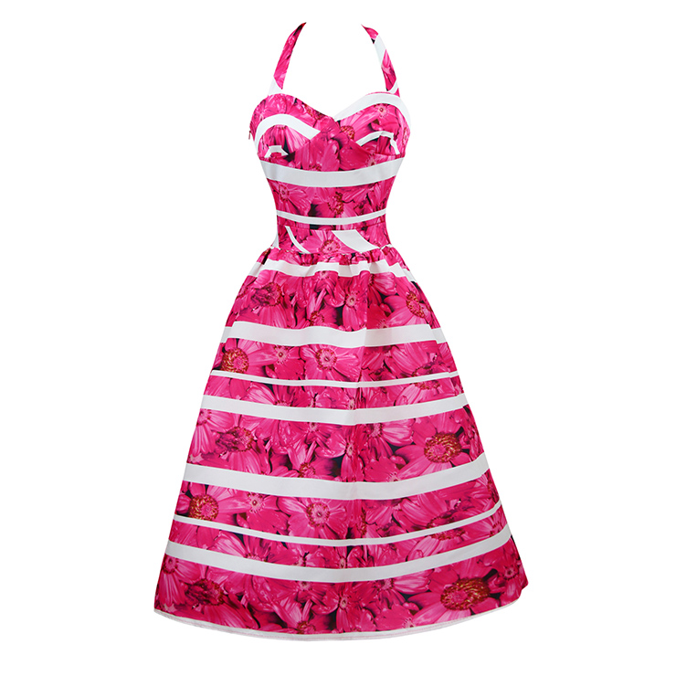 This vintage 1950’s swing dress features: fashionable patchwork design, high-waisted and halter sweetheart neckline design, full circle swing skirt,concealed zipper at side.