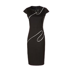 Women's Vintage Black Pencil Dress featuring fashionable patchwork design, adorable cap sleeve, is well tailored to show better slender silhouettes and charming looks, concealed zipper at back for convenience.
