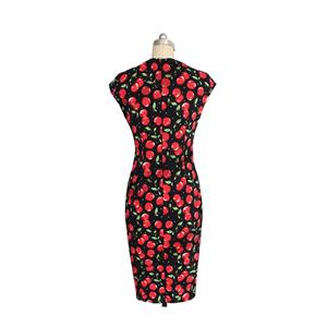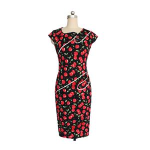 Women's Vintage Pencil Dress featuring fashionable patchwork design, adorable cap sleeve, retro cherry pattern, is well tailored to show better slender silhouettes and charming looks, concealed zipper at back for convenience.