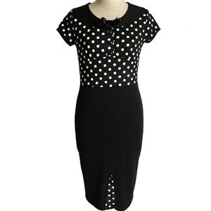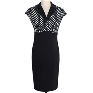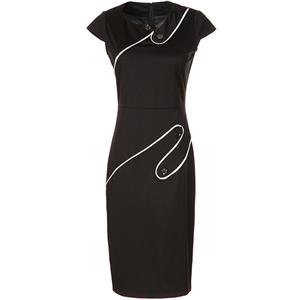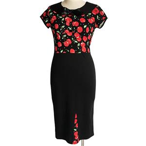 Women's Vintage Red Pencil Dress featuring fashionable patchwork design, adorable cap sleeve, is well tailored to show better slender silhouettes and charming looks, concealed zipper at back for convenience.