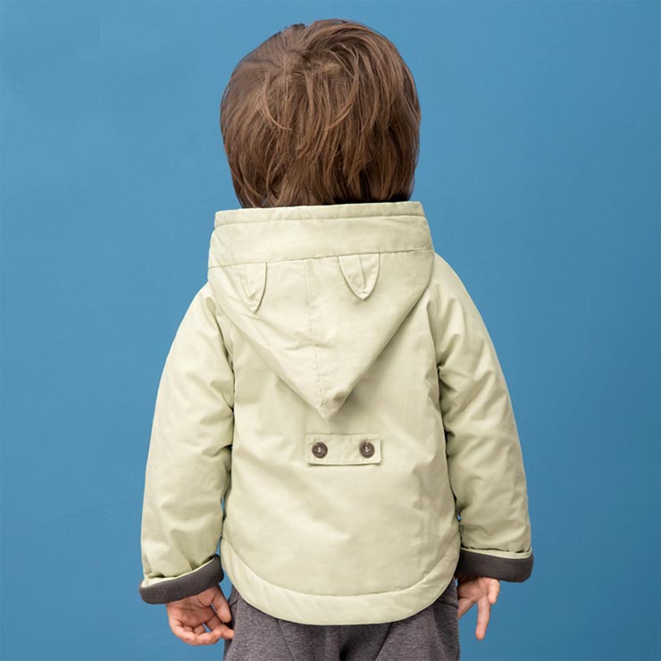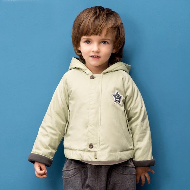 Boys Hooded Quilting Parka is crafted from wind-resistant cotton fabric, thick filling and contton lining, full long zip and fastner in front and pockets in both side, hood with lovely ears for added warmth and cute sense, adorable star applique on chest.