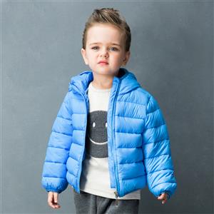 Girls Blue Puffer Jacket boasting a smooth feel and lightweight design, filling with high-quality duck down to protect her from cold, the water resistant design comes with side pocket and a full zip fastening, candy color lighting up the cold winter, a padded hood adds extra warmth.