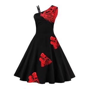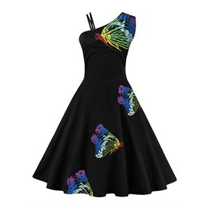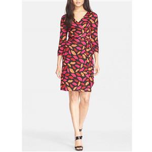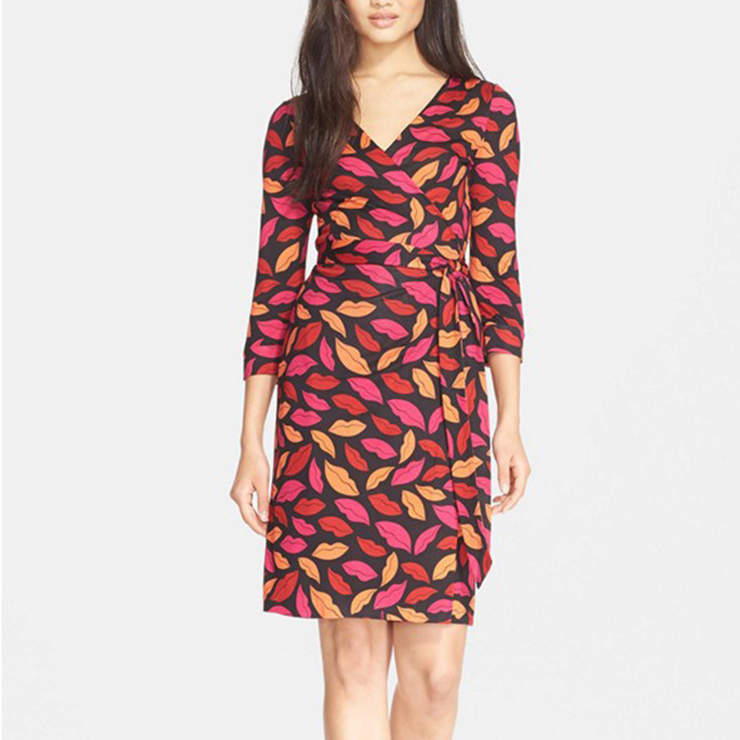 Women's elegant midi dress is well-tailored for a graceful figure, features colorful lip print throughout, sexy sharp v-neckline, knee length design makes you look slimmer and taller. Matching waist band.