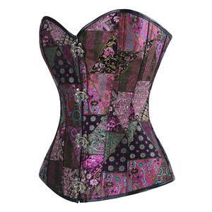 Steampunk Corset features delicate jacquard fabric, unique retro pattern, faux leather trim, attached with spiral steel bones for extra support, strong cord lace-up back for cinching, which will offer you an hourglass figure effortlessly. A perfect piece for your vintage style.