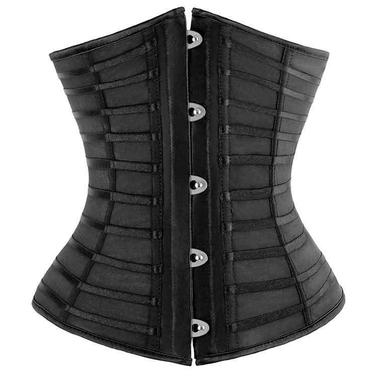 This sexy black underbust corset features: black mesh create a seethrough effect, busk closure front and straps round waist for embellishing and training (only includes corset).