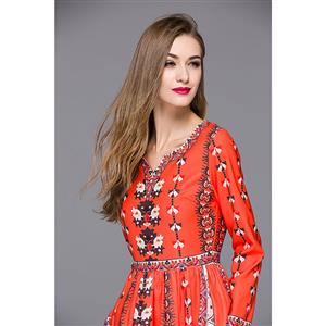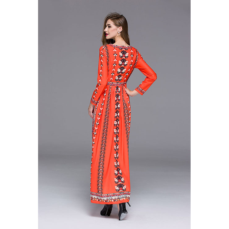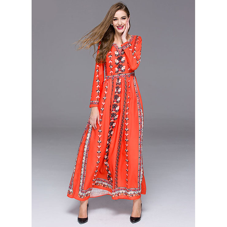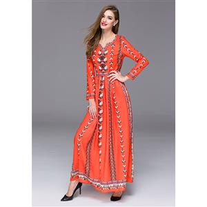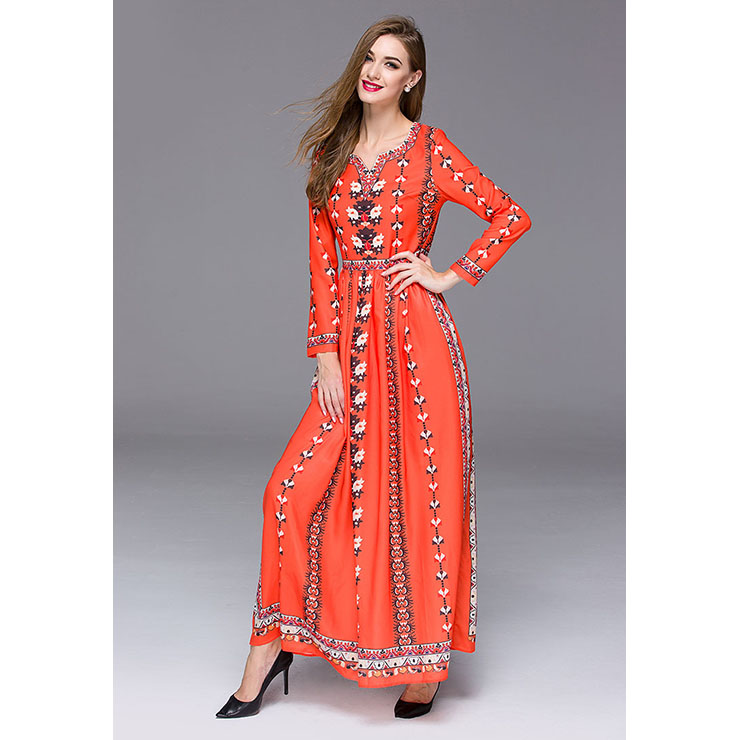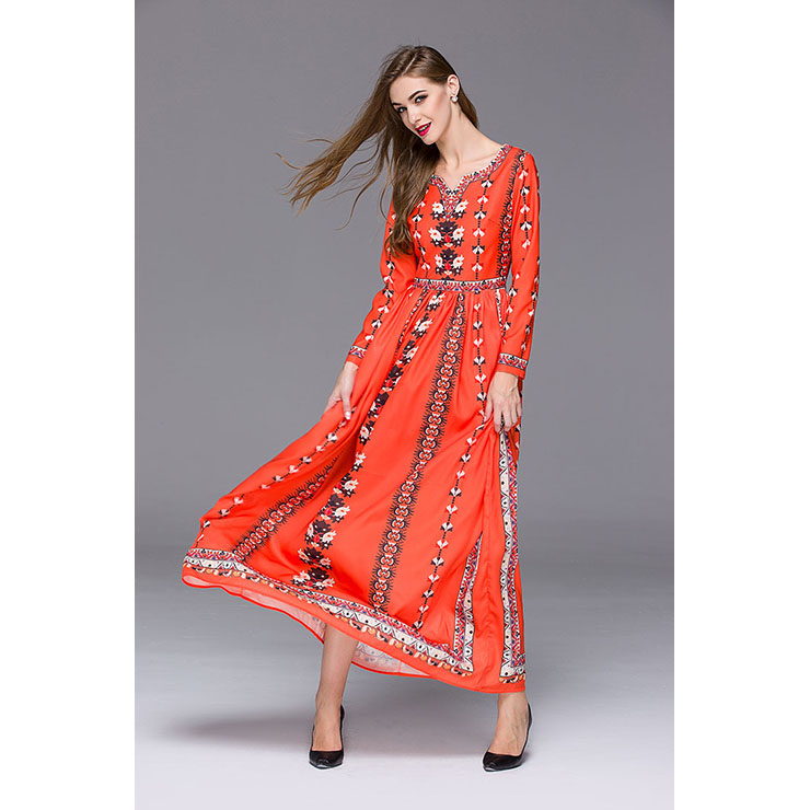 This graceful vintage long dress featuring retro ethinic pattern,with unique neckline design,uses high qulity material,which is soft and comfortable,high waist and ankle length design makes you look taller and slimmer.Wish you like it.(shoes not included)