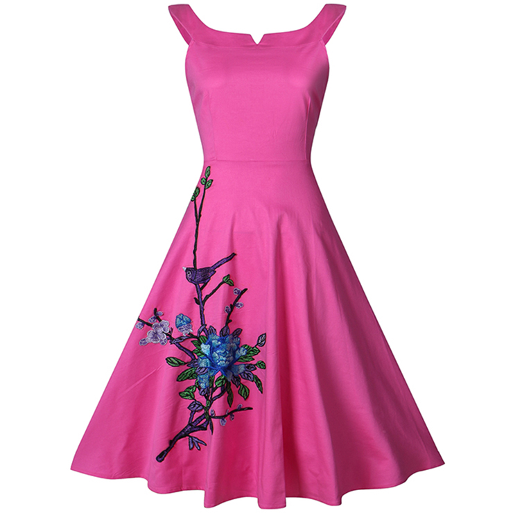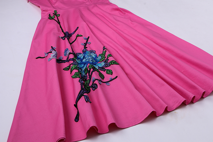 Combining clean lines and a timeless retro dress silhouette,this Elegant Vintage Swing Dress is fashioned in a structured vintage 1950s style,high-waisted and wide scoop neckline design show off your slim figure perfectly,beautiful embroidery floral pattern on skirt,looks so charming,concealed zipper closure at side for wearing easily.This gorgeous swing dress is an absolute must for your wardrobe,perfect for dinner,cocktail parties or casual wearing.