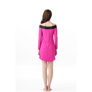This soft loose fit tunic featuring stretchy off-the-shoulder neckline with black lace trim, ¾ length sleeves and shirt tail hem,uses high-quality fabric, soft and elastic stretch fit,suitable for all types of ladies,ideal for sleepwear.Matching G-string.