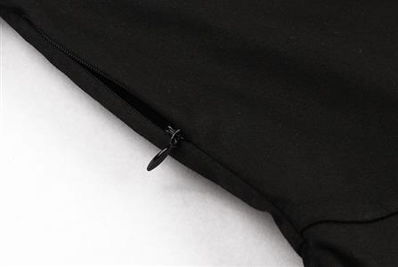1950's inspired vintage black dress featuring unique turn down collar with red bowknot joining,3/4 length sleeves,A-line swing skirt and red trimmings,concealed zipper closure at side.Great for daily life,wearing to work or cocktail party.