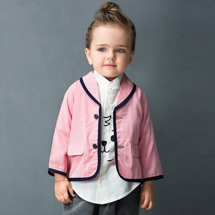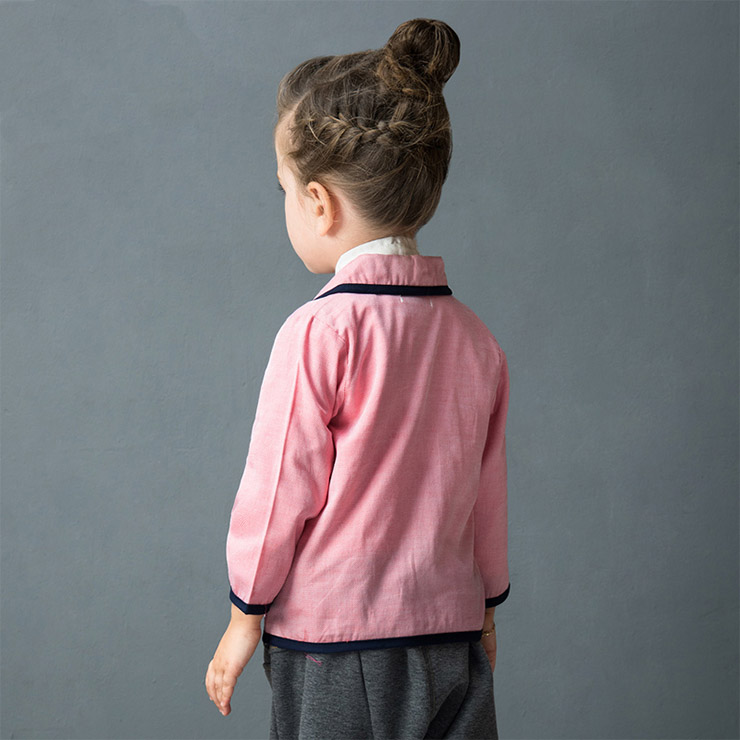 Your little girl is bound to love this retro inspired jacket featuring fashionable design and sophisticated craftsmanship, combining button fastenings with contrasting black trimming, plain color is the essential element of autumn.