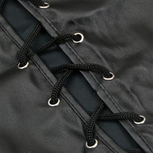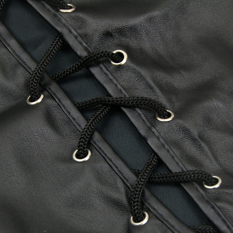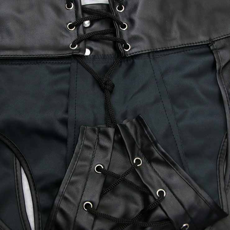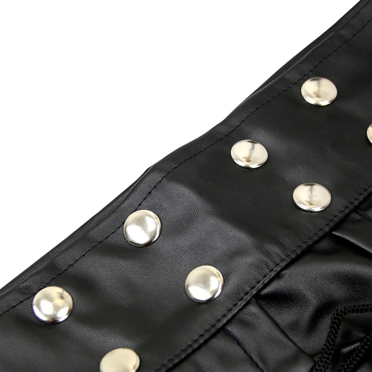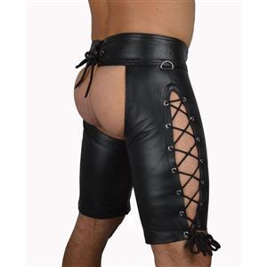 Men's Black Open Hips Pants comes with lace up details around, eight silver buttons on waistband,open hips design, made by pu material.