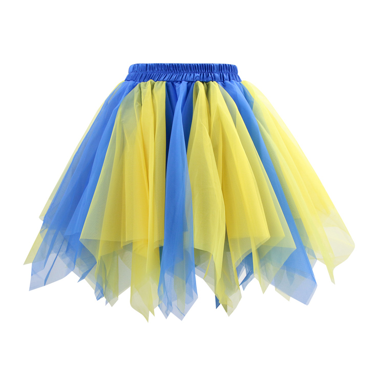 This tulle tutu skirt featuring full elastic waistband for a comfortable fit, irregular multi layered design, with two color tulle fabric, skirt with fully lined inner lining and not see through. You can wear as a mini skirt or petticoat for short prom dresses or pair with some corset will make more special(Only skirt)!