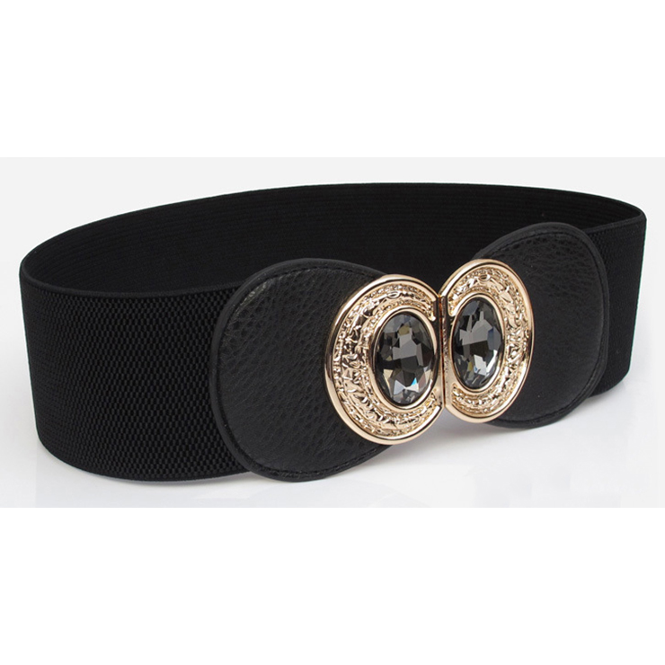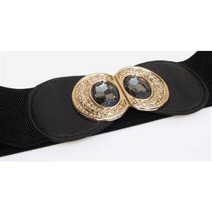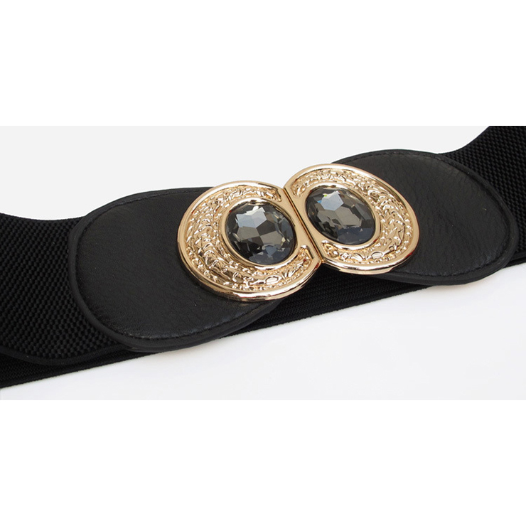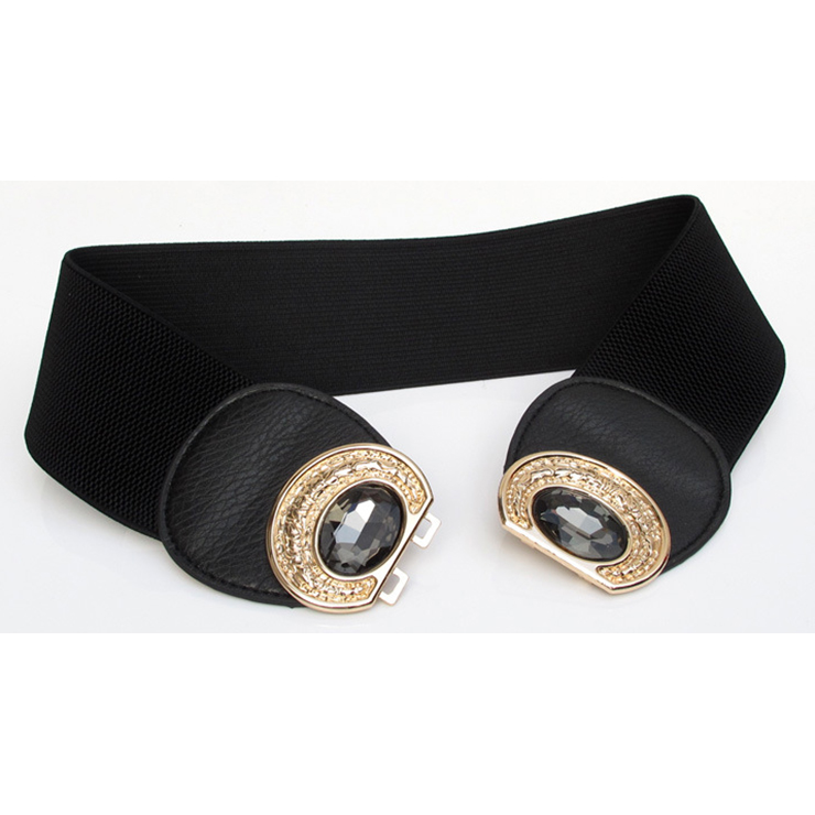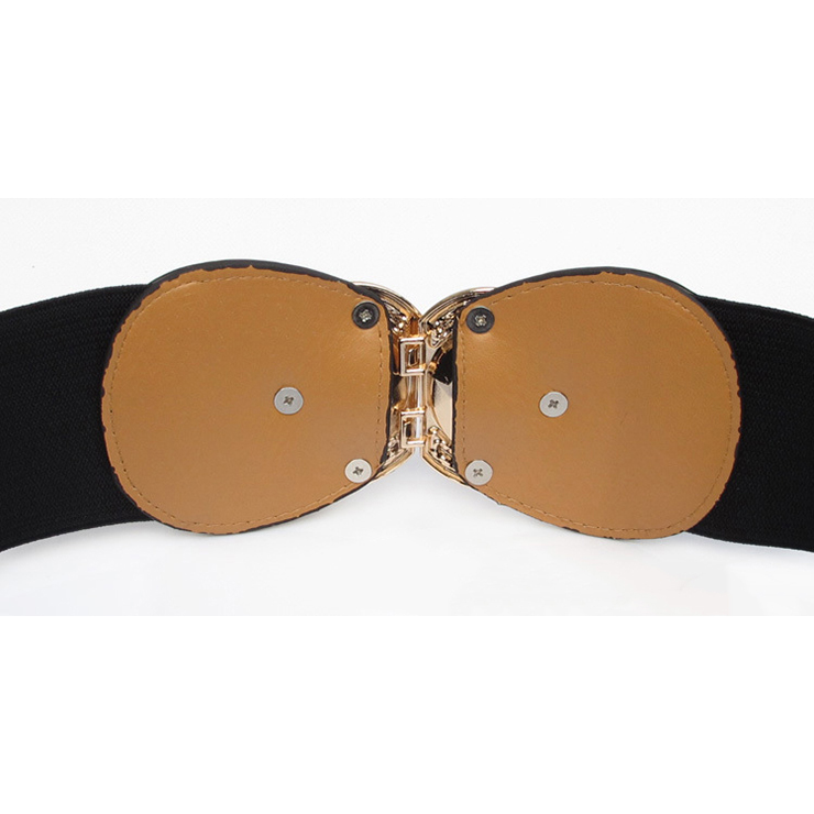 The elegant elastic wide waist belt featuring high stretchy, no bound feeling, leather patchwork, metal interlocking buckle at front, easy to wear or take off, suitable for women with waistline of 65 to 85cm, can be paired with your dresses, tops, etc, fashion, formal or casual style, suitable for daily or other special occasions.