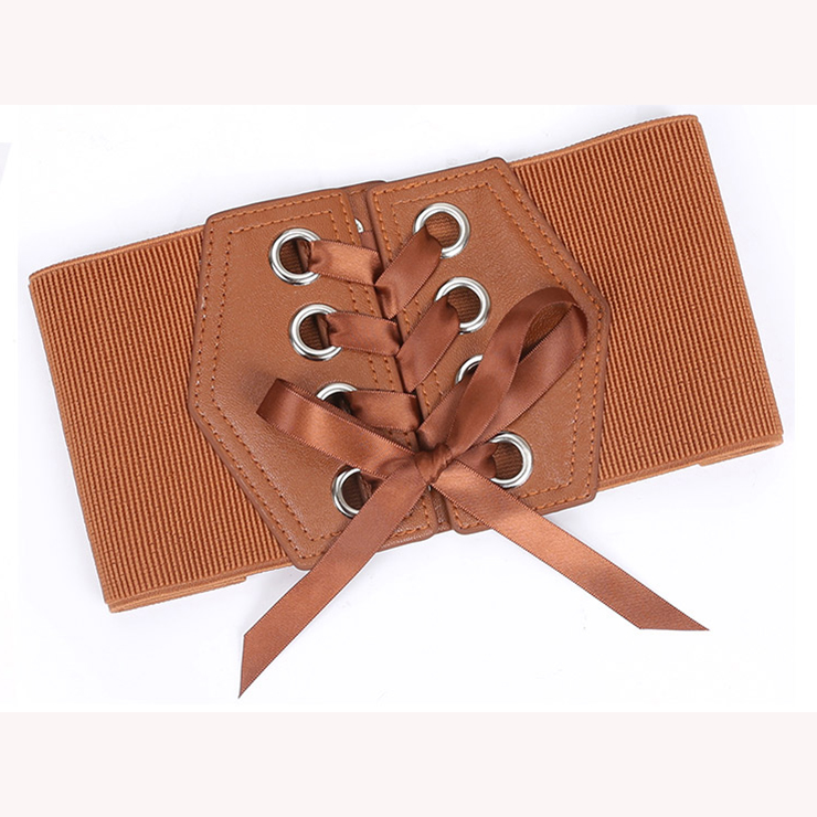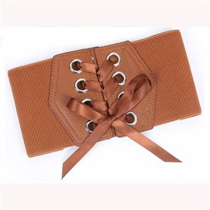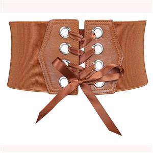 The fashion waist elastic belt features with ribbon lace up closure, high quality leather fabric at front, three snap buttons closure at back, makes it easy and convenient to wear or take off. The corset belt can be matched with dress and perfectly highlight your waist.