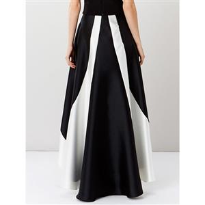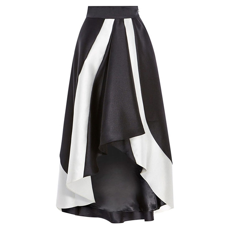 This women black white patchwork skirt featuring high waisted A-line silhouette, black color as the ground color and white patchwork at two side, high low pleated design, with lining and no elastic, hidden side zip-up closure. Paired with T-shirts, shirts, clothes, sweaters, and fit many occasions, daily wearing, cocktail, party, formal occasions, etc(Only the skirt)!