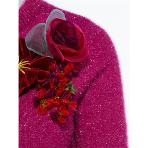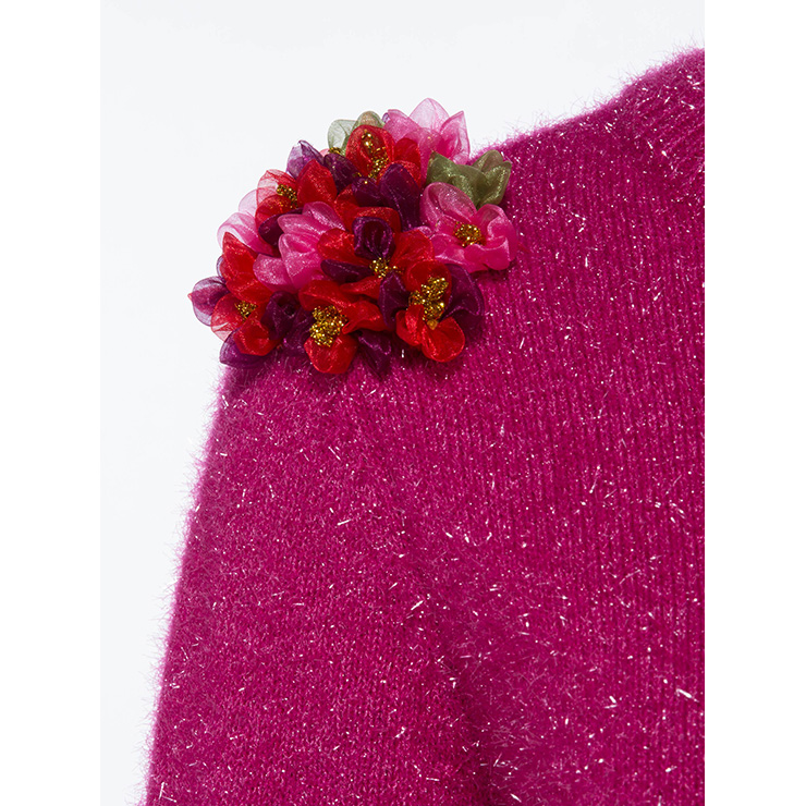 Stylish women's sweater featuring plain hot pink color, round neck, long sleeves, pullover styling, high quality furry sweater fabric keep you warmth in the winter, with hand-made faux flower applique design. It is a classic style, definitely pair well with any of your skirts as well as pants, perfect worn for casual, winter, autumn, holiday, street, go out, date and daily(Only the sweater).