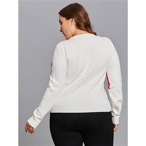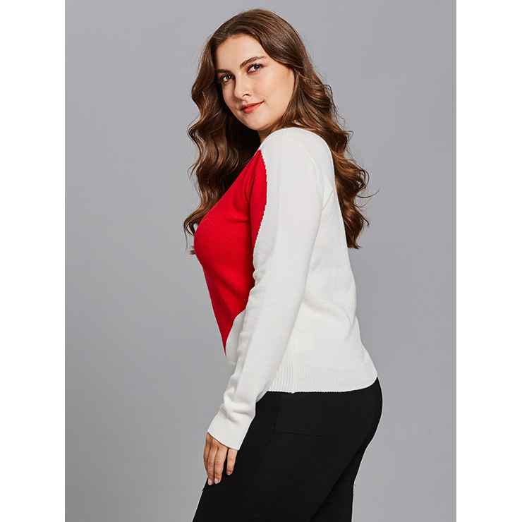 Women's white plus size sweater featuring round neck and long sleeve, front with a big heart shape from sleeve to bodice, high quality skin-friendly knitted fabric keep you warmth in the winter. This kind sweater is definitely pair well with any of your skirts as well as pants, perfect worn for daily casual, holiday, street, go out, date and office(Only the sweater).