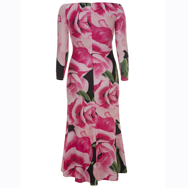 The plus size dress featuring long sleeve, off shoulder, elegant floral print cover the whole dress, maxi length, hidden zipper in the back, slim fitted and bodycon design help to show your figure perfectly. Occasions: suitable for party, date, go out, dinner, vacation, daily life and more.(Only the dress)