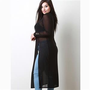 The long tops featuring long sleeve, round neck, plus size, solid color, high slit, pullover, see-through and unique design make you look sexy and fashion, can be paired with any of your pants. Occasions: suitable for go out, club, shopping, date, daily life and more.(Only the tops)