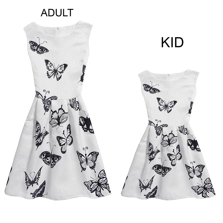 How Sweet for mother and daughter wear matching vintage dress! This vintage family matching dress featuring good stitching and well made, durable, with simple round neck and sleeveless design, lovely black butterfly pattern, A-line design make your girls and you so beautiful and adorable, hide zipper at back. Suitable for home, travel, go out, parents-child campaign, family day, parties and so on(Only the dress).