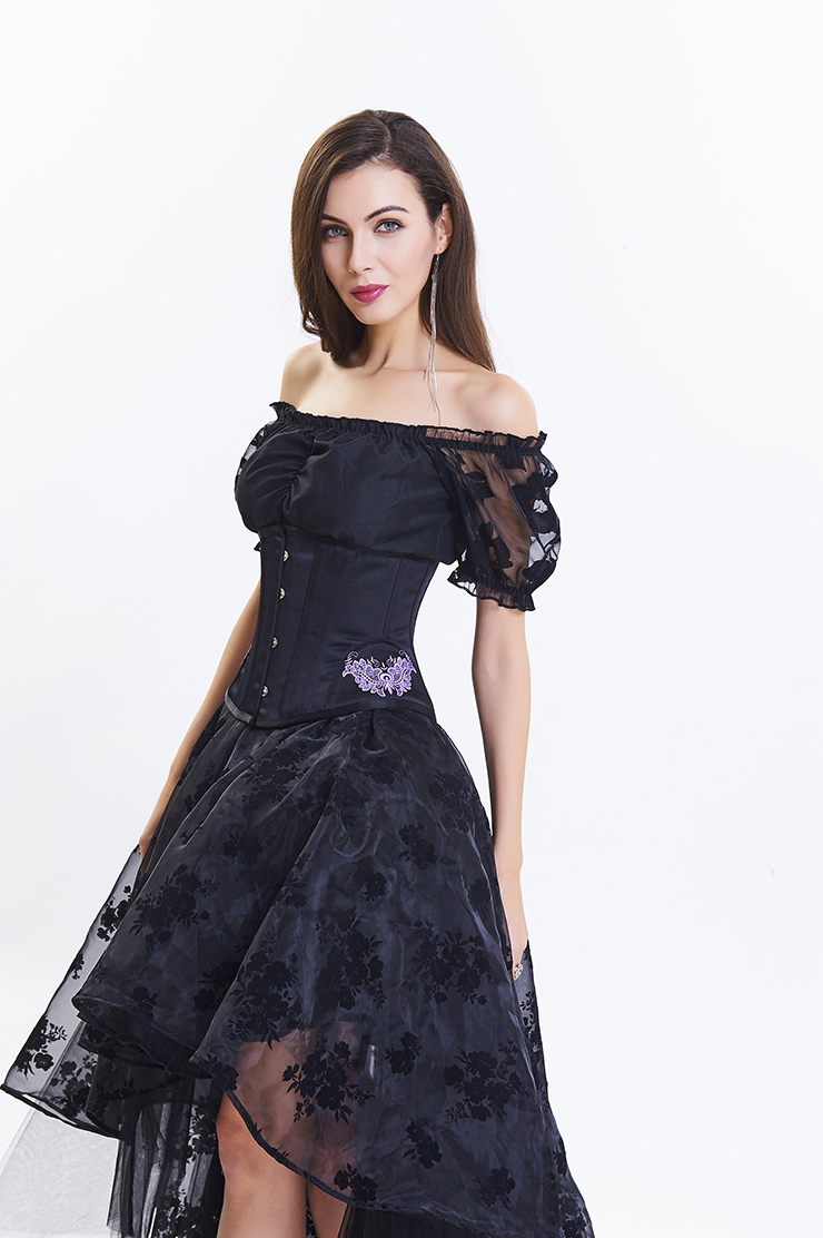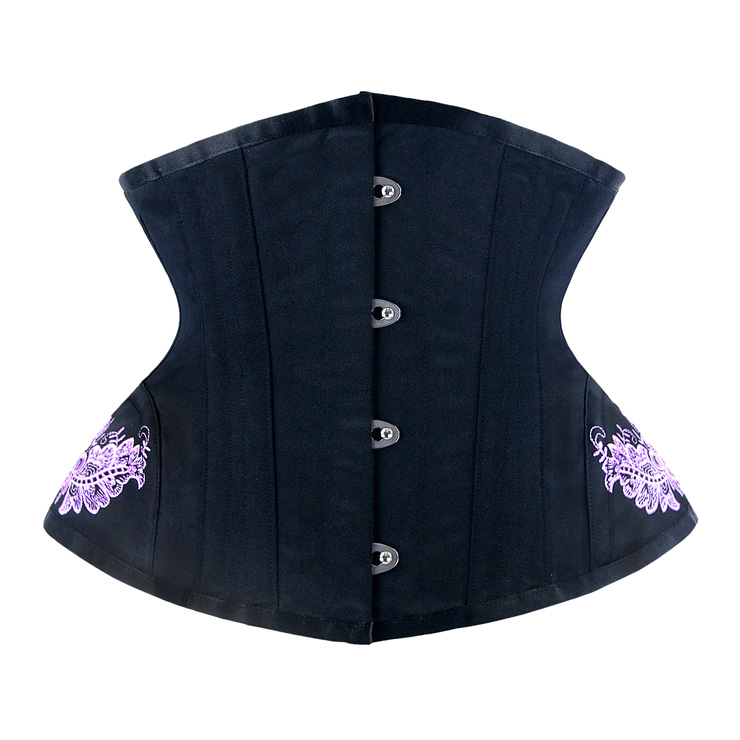 This vintage underbust corset is designed for tight-lacing and waist cinching, features two-layer high quality thick cotton and the vibrant embroidery on both side, front busk closure and strong cord lace-up at back, steel bones for extra support, comes with modest panel. (ONLY INCLUDE CORSET)
