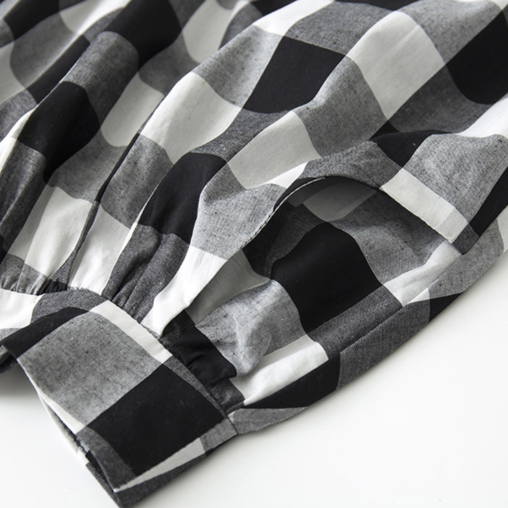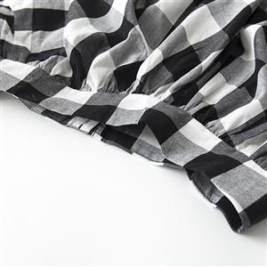 Vintage black T-shirt with retro cut out neckline design,pick knitted fabric that is so soft and comfortable. Pair with classic black&white plaid skater skirt features high waist design and A-line form, elastic waist band, lovely pink dog pattern, uses quality cotton fabric.