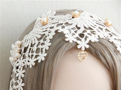 Ladies White Lace Hair Clasp features pure white floral lace, embellished with metallic crown and pure pearl, so charming and attractive. Great for wedding party and prom.