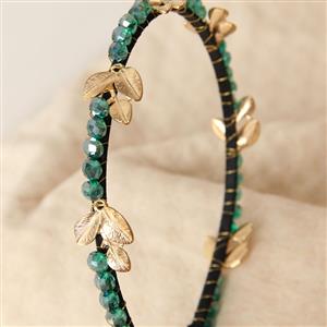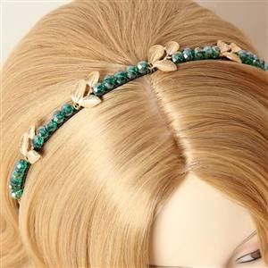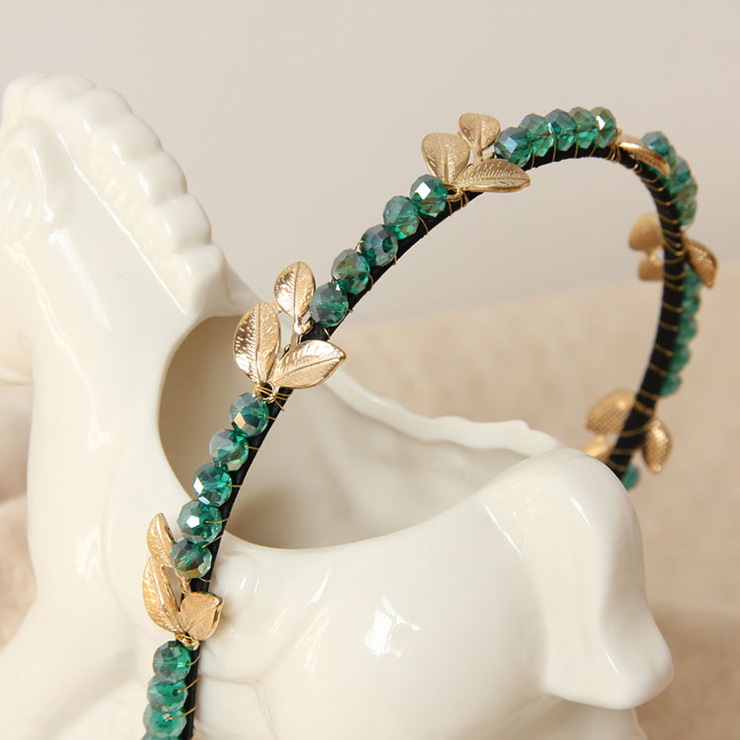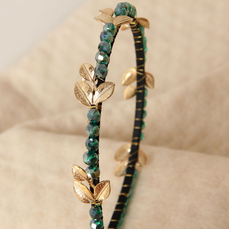 This girly hairhoop is decorated with green gem and gold leaves, is wrapped with ribbon without hurting your skin, perfect for wedding party, daily casual.